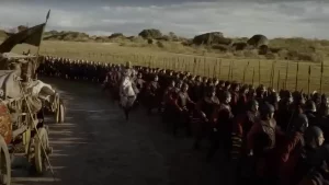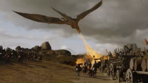 In this battle, Daenerys’s Dothraki horde ambushed the combined Lannister-Tarly army and supply train as they were returning east to King’s Landing after successfully sacking Highgarden. It was the first time that Daenerys used her dragons in battle in Westeros, riding Drogon and turning the battlefield into a blazing inferno.