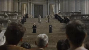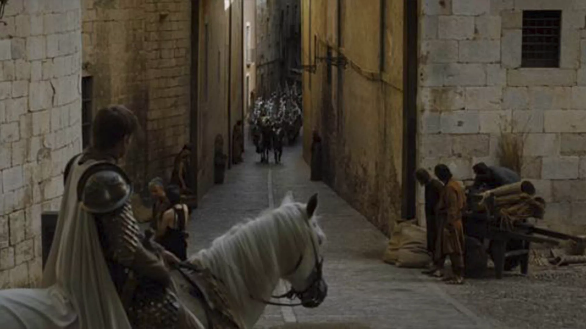 The Cathedral scene included the largest number of extras, with nearly 200 Tyrell soldiers, dozens of sparrows, beggars… and the added spectacle of Jaime Lannister riding his horse up the grand staircase of the impressive building—all with magnificent sea views.