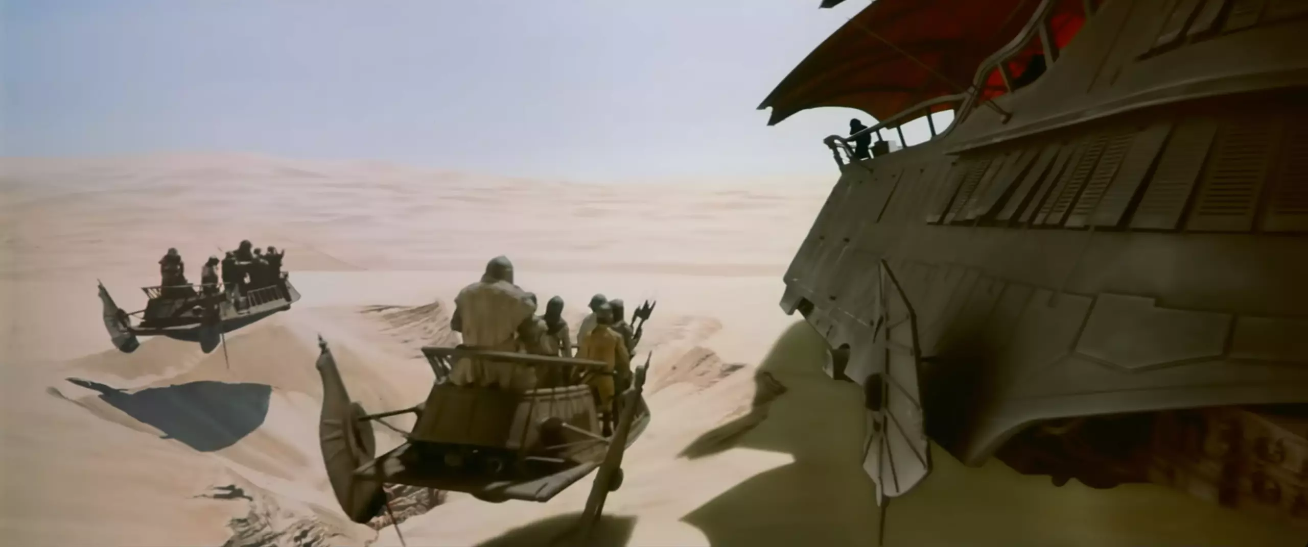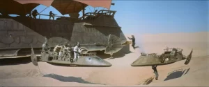 The actual filming took place in Buttercup Valley within the Imperial Sand Dunes, located in Imperial County, California, approximately ten miles from the Arizona border. Yuma, Arizona serves as the nearest significant city to the remote filming site. The production constructed an enormous 80-foot-high, 212-foot-long hover barge at this location, which was so massive that the crew utilized the space beneath it for offices, trailers, and a commissary with 150 seats. The dunes were filmed under strict secrecy, with the production masquerading under the working title “Blue Harvest – Horror Beyond Imagination” to prevent unauthorized visitors. The area’s natural sand formations and vast desert expanse provided the ideal environment for creating Tatooine’s otherworldly appearance.