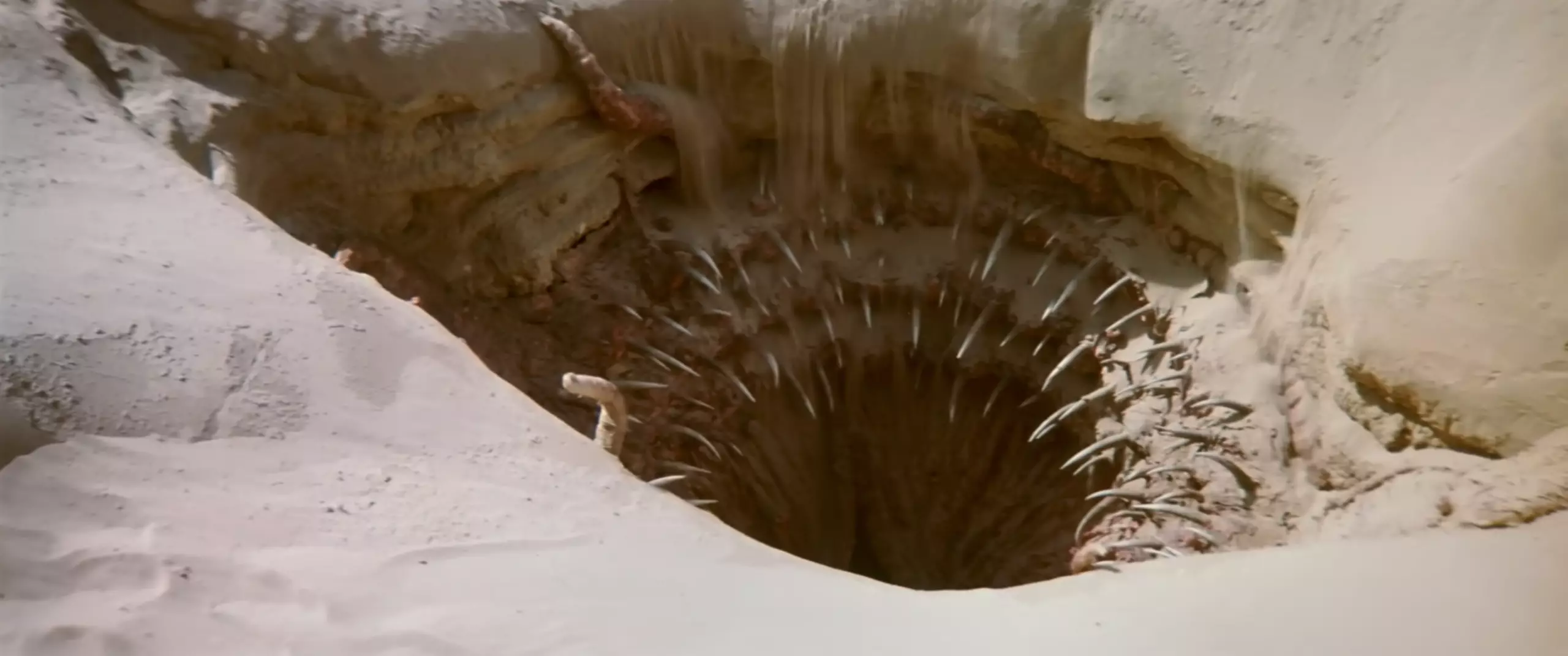 The Imperial Sand Dunes offered filmmakers several advantages for bringing the Great Pit of Carkoon to life. The expansive, undulating sand formations created an authentically alien landscape that required minimal set dressing or digital enhancement. The remote location in southeastern California provided the isolation necessary for the production to work without interference, allowing crews to construct the massive hover barge and maintain security around the elaborate set. The natural desert environment’s scale and desolation perfectly matched the vision of Tatooine’s harsh, unforgiving terrain. Additionally, the area’s accessibility via established roads made it practical for transporting equipment and personnel, despite its remote character. The location’s success led to its reuse for additional Star Wars filming, including footage shot in August 1995 for the Episode IV Special Edition.