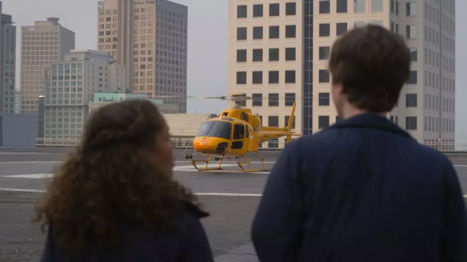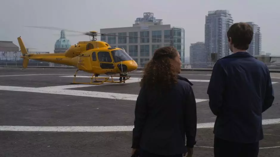 • Shaun Murphy and Claire Browne head to the hospital helipad to catch a helicopter down to San Francisco to retrieve the donor organ.
