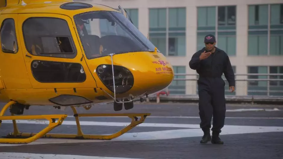 • The helicopter, lighting, and angle of the city backdrop help sell the illusion of a different hospital in another city, even though the scenes are shot at the same physical location.